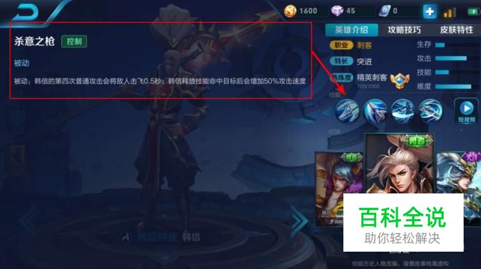 被动技能:杀意之枪;可以看出韩信很吃攻速,完全靠普攻输出的一个英雄,记住这一点,能让你更好的击杀敌人。所以铭文要带攻速,这样基础加成很高;前期刷野快;