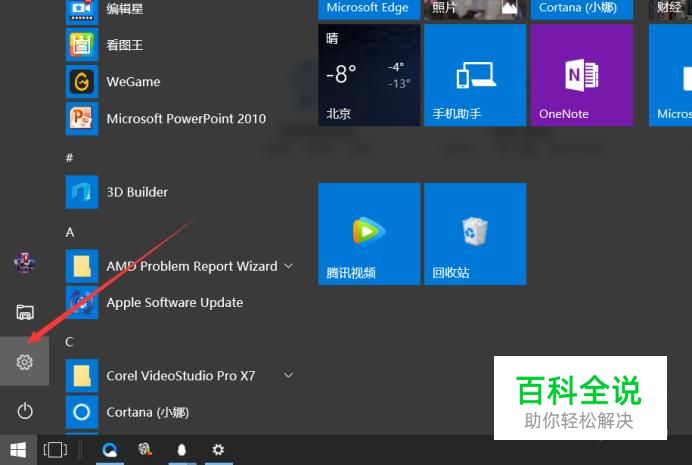 点击开始,设置,进入win10系统的设置