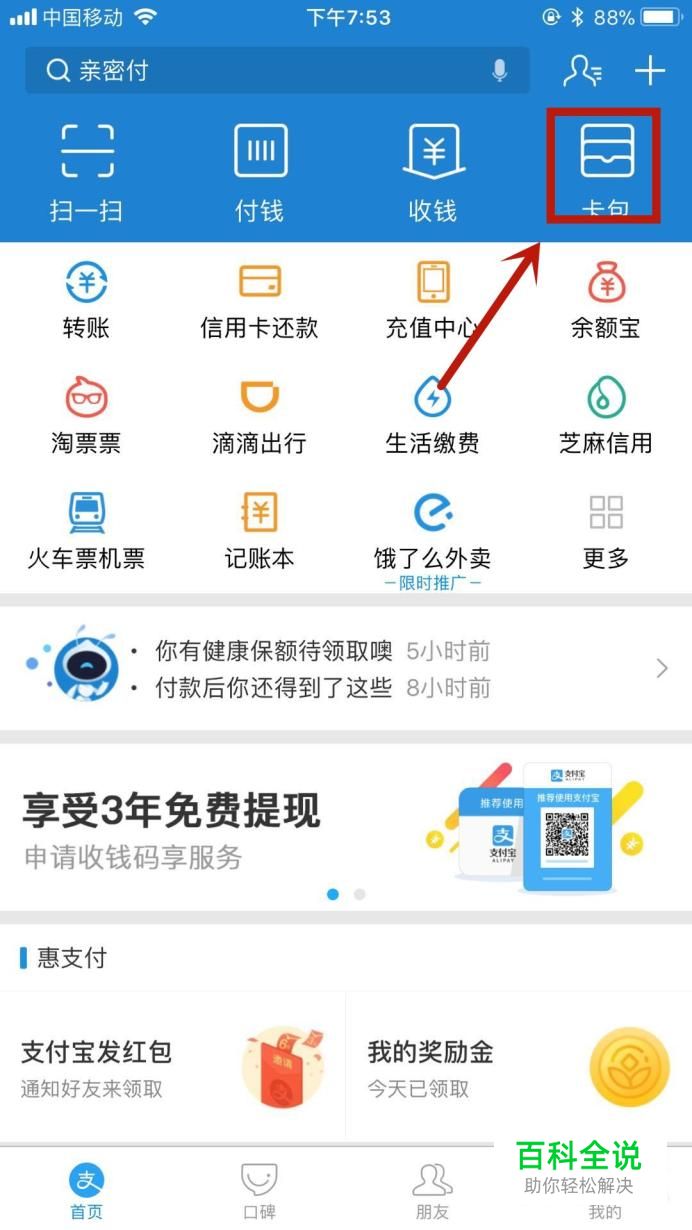 然后点击“卡包”,如下图所示。