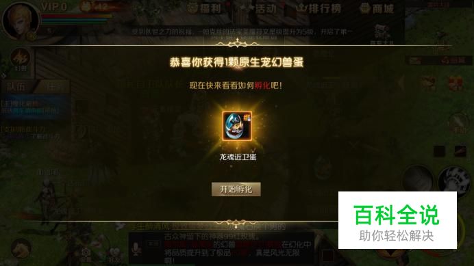 当玩家完成任务或者活动的时候,可能会获得幻兽蛋,系统会弹框提示,点击“开始孵化”