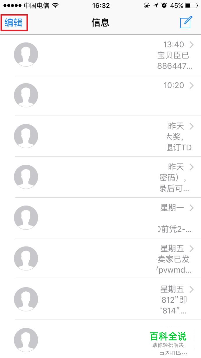 进入短信页面点击“编辑”。