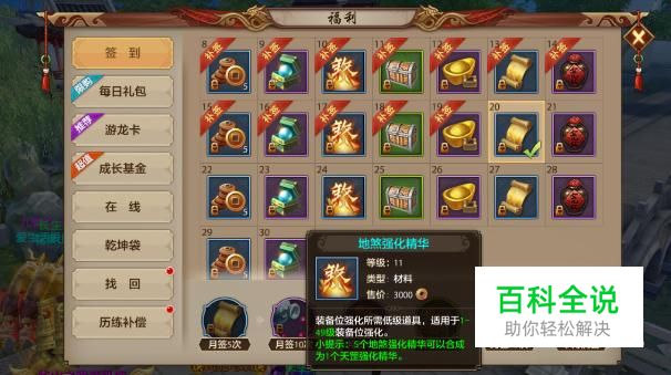 签到: 在天龙八部手游中,玩家可以通过签到获得铜钱、洗髓丹、藏宝图等道具,同时还有机会获得地煞强化精华。