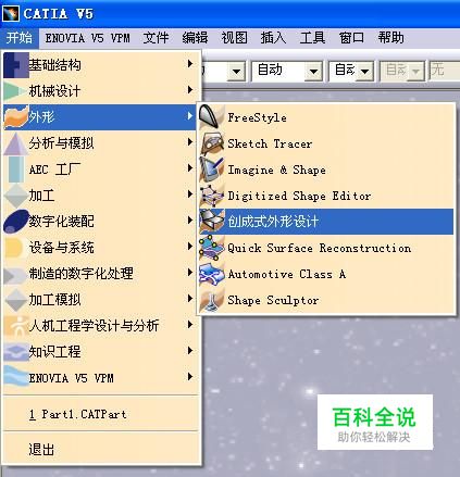 首先我们打开CATIA软件,在菜单栏中单击开始>外形>创成式曲面设计,弹出新建零件对话框,在输入零件名称一栏中我们将名称指定为空间管,单击确定退出对话框;