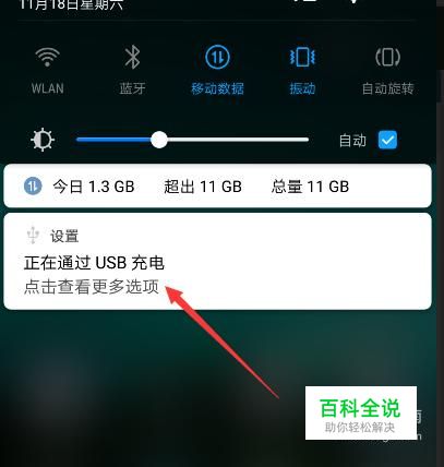 用数据线连接手机和电脑,打开手机上的usb调试模式,点击通知栏中弹出的提示。