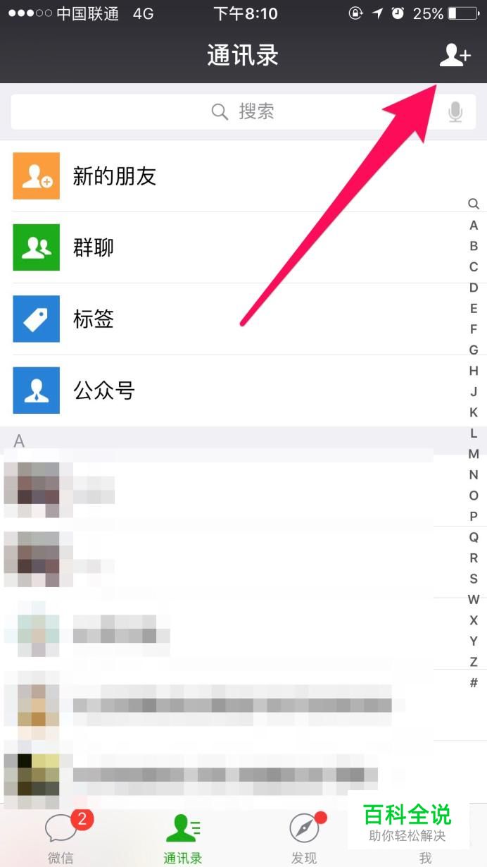 在通讯录界面上,点击右上角的“添加联系人”按钮。