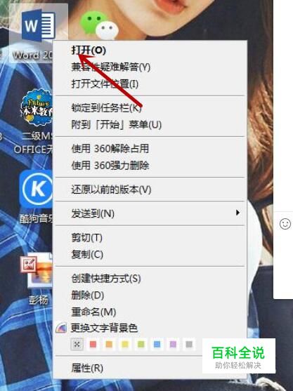 在电脑桌面上找到Word2013 ,并点击鼠标右键,然后鼠标左键点击“打开”。