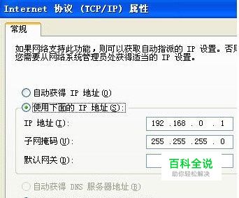 打开主机的 “网络连接”,选择“无线网络连接”,右键打开属性对话框,在“常规”选项卡下,双击“TCP/IP 协议”,配置 IP 地址和子网掩码分别为:192.168.0.1 和 255.255.255.0 (如图所示),其他的不需要设置。