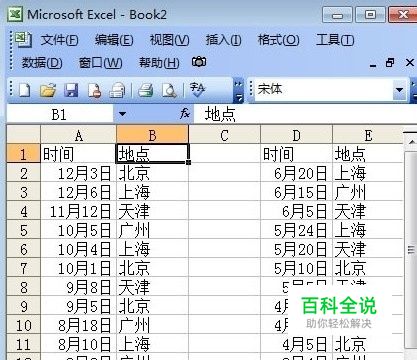 现在我有一张表,有“日期”和“地点”,我希望将“地点”按照我的方式如:北京、上海、天津、广州,这样来排序;(如下图)地点排序很乱,我们该如何来将它按照自己的方式来排序呢?