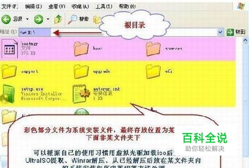 以本人电脑分区来说,例如:我的win7装在C盘,划一个分区G盘(20G左右就可以)用来装win8系统,接下来,把win8的解压到某个盘根目录下,比如D盘,E盘,F盘,都可以,只要别解压在要装win8系统的盘就行了.记住一定是要解压到根目录下,如:X\(win8解压出来的文件),注:X代表盘符,不可以这样放:X\文件\(win8解压出来的文件).
