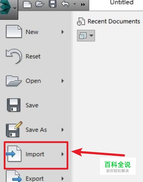 打开后,打开系统菜单,点击“Import”(导入)