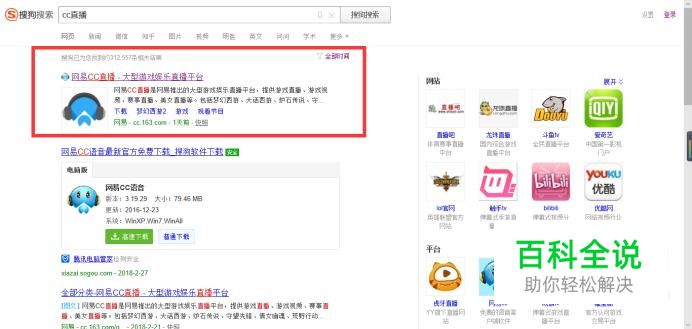 打开搜狗搜索引擎,搜索“网易cc直播”,搜索结果如图所示。