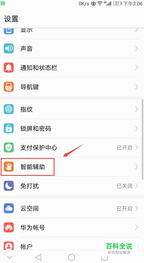 在设置这里,我们下拉找到“智能辅助”,点击它,如图。