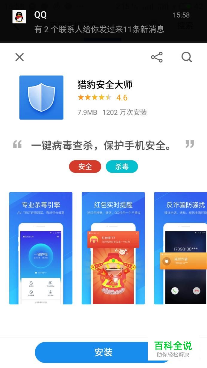 腾讯手机管家也是排行榜中值得选择的杀毒APP,腾讯杀毒APP专治各种不服多为病毒,就是这么牛。