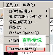 点击网页最上面一拦的‘ 工具(T)’,然后找到‘ Internet 选项(0)...’