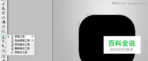 前景色设置纯黑,选择形状工具,形状圆角矩形工具,在背景上层拉出形状适当钢笔修改下,如下图