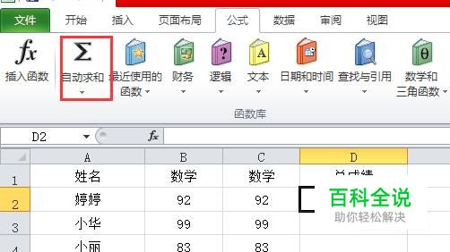 选中"总成绩"下方的第一个单元格,然后点击界面左上角的"自动求和"
