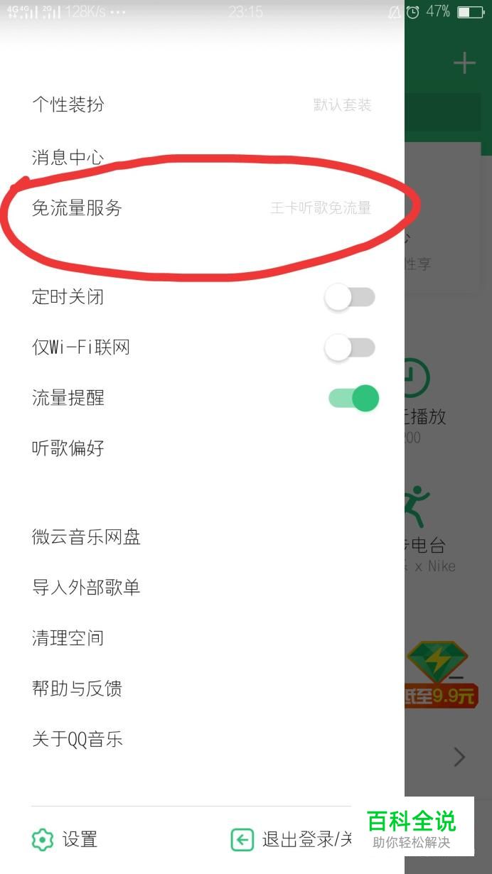 点击个人设置,找到免流量服务,进行下一个步骤。