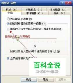 首先双击打开回收站,在回收站存放垃圾文件的空白处点鼠标右键→属性→弹出窗口后在[删除时不将文件移入回收站,而是彻底删除(R)]前面的方框中打上对号,最后点确定即可,然后我们在看是不是无法删除的文件全不见了呢。