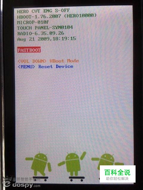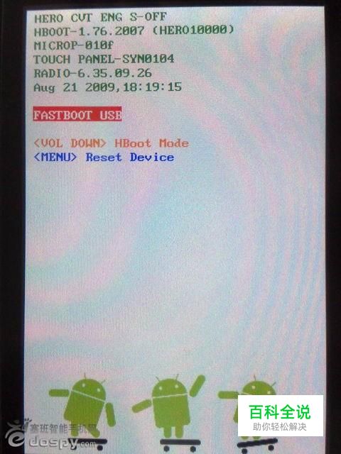 看看是否成功了 请直接取下电池或在SPL模式下,按一下MENU键(关闭手机) 再长按小房子键+开机键,进入RA模式 看看有没有刷成功,如果出现下面的图片,那就是刷成功了!!! 这时你的Recovery就刷好了