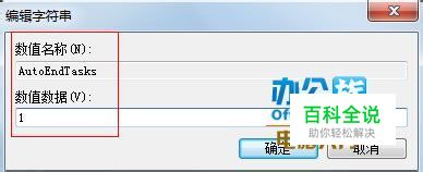 找到AutoEndTasks一项,双击,将其数据值修改为1.