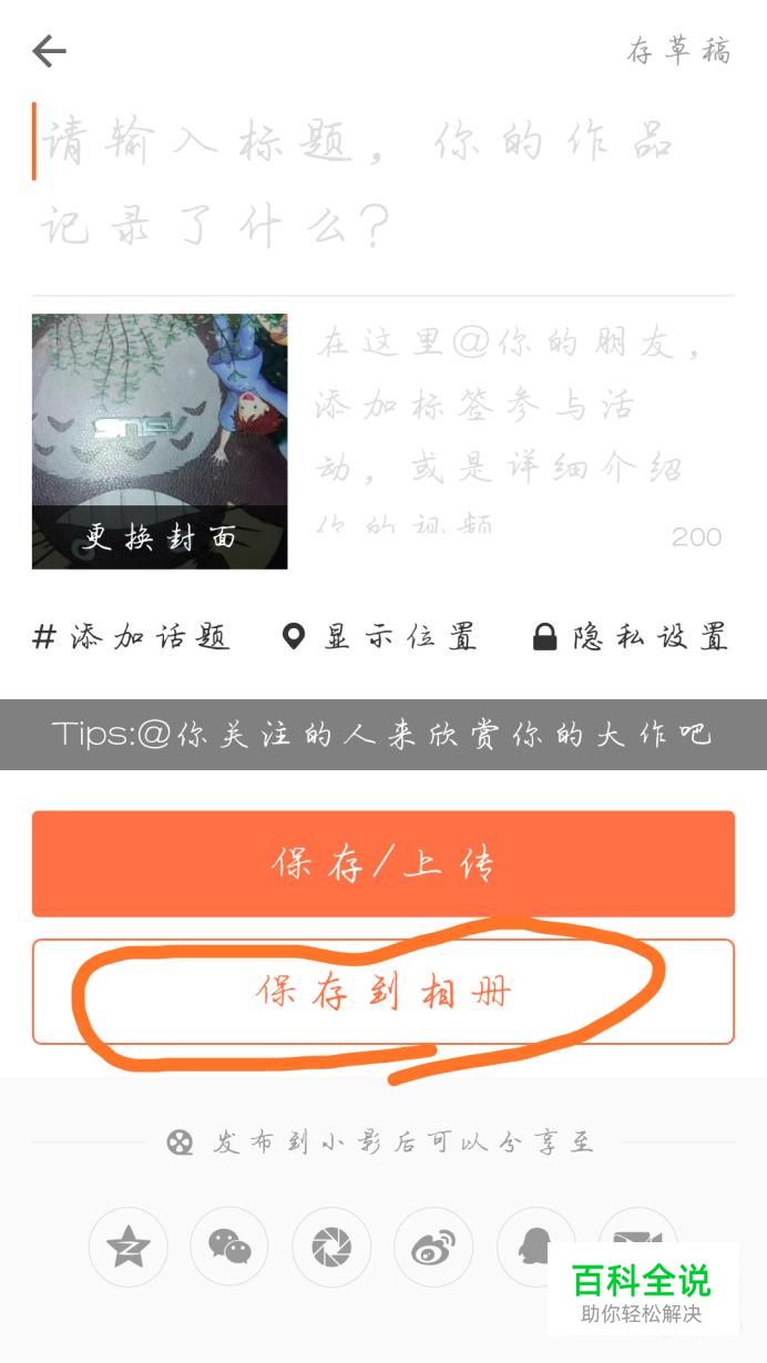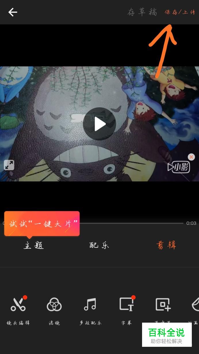 拍摄或者剪辑一段视频,点击“保存/上传”