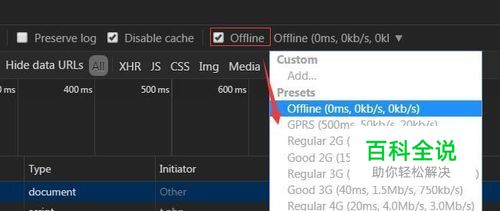 还有一个方便开发者的小功能,“Offline”,表示离线断网,后面的选项 ,是用来模拟各种网速下网页的加载状态。通常我们在本地调试时,由于资源不需要通过网络传输,各种资源瞬间载入,勾选以后,就可以模拟离线状态、调试超时状态、载入缓慢的状态。这个小功能真是非常贴心!赞一个。
