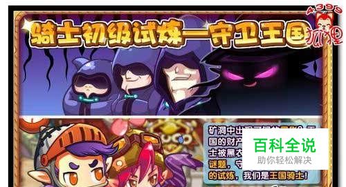 先点击任意一个黑衣人,听他们对话,然后再次点击黑衣人,触发剧情。 等黑衣人被兰斯洛引开之后,狐狸就过去解救蔷薇骑士。接着回到【王国城堡】和兰斯洛汇合。 之后,我们就要正式进行初级骑士试炼啦~准备好了吗?好了,就和兰斯洛对话,接受试炼咯! 兰斯洛的宠物有57级的火云神和59级的火神,并不算是难过的对手哦~不过狐狸建议要速战速决,因为火神后面会出不敬斩,不是好应付的哦~而火云神和火神都寄生技能,所以应付它先上寄生免疫的草系宠物来顶。 战斗胜利后,和兰斯洛对话~完成最后的考验。就是玩【骑士的荣耀】小游戏……