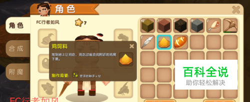 根据迷你世界游戏的介绍,玩家要想制作鸡饲料,此时需要原材料12颗麦子的种子,然后通过加工制作而成。