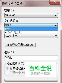 在“文件系统”选项选择“NTFS”选项