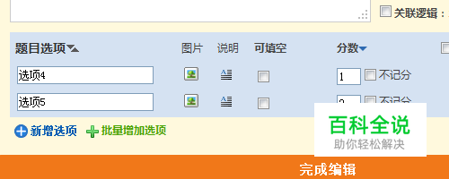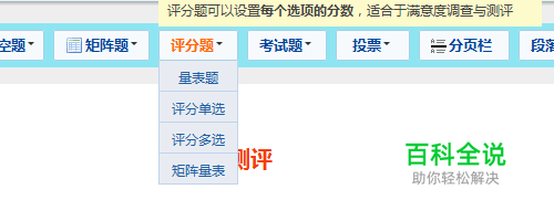 想要设置测评报告,首先要制作一份包含评分题的问卷,并为这些评分题的各个选项设置相应的分数,如图: