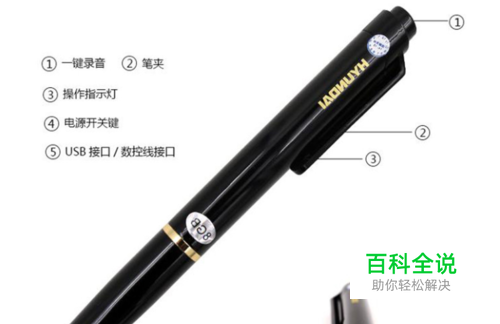 首先认识一下录音笔的结构,前端是录音按钮,拧开中间的金色圈,里面有个微型开关