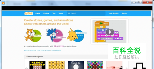 首先在搜索引擎中输入关键词:Scratch →找到官网,打开之后,将网页拉到底部。