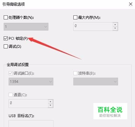 这时就会弹出一个引导高级选项窗口,在这里可以看到PCI锁定设置项。