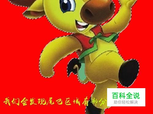 第三步:我们开始使用“魔棒工具”进行抠图: 大家看看效果,我们已经将素材中的牛抠出来了。