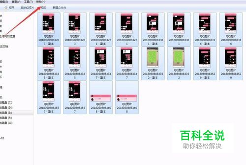打开这个新建的文件夹,我们可以在左下角看到张数,核对一下是不是跟我们发送的图片数量一致。 然后选择CTRL+A进行全选。这样就选中了所有的照片。 在上方我们看到有一个打印的选项。