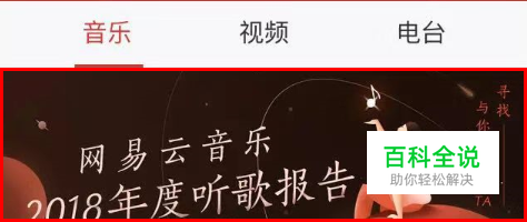 首先打开手机中的网易云音乐APP,进入首页,找到如图所示的2018年度听歌报告的导航栏,点击进入