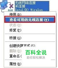 二、选择“无线网络连接” ,鼠标右键选择 “查看可用的无线连接”。