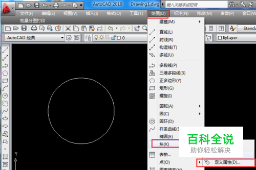 打开CAD软件,画一个半径为10的圆 点击“绘图-块-定义属性”或者快捷命令“att”-空格