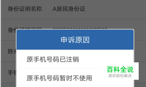 然后到了用户信息申诉页面,先点击申诉原因,弹出三个选项,包括号码注销,暂时不用,无法接收短信等,选一个原因,比如小编选择原手机号码暂时不使用。