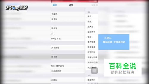 首先打开设置,点击通用,找到辅助功能,点击主屏幕按钮。