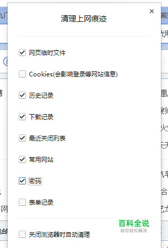 然后打开“清理上网痕迹”后,勾选“密码”,然后进行清理。