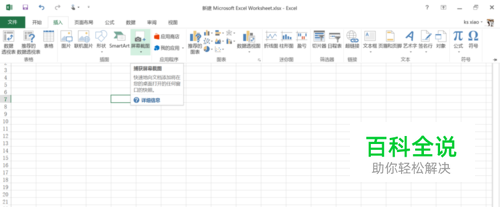 我迅速打开excel,并且点击了下“插入”,我示意她看看,在“插入”菜单下有一个“屏幕截图”的图标,把鼠标停留在该图标上面会有提示“捕获屏幕截图”。
