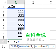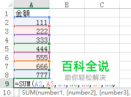 其次求和除了选择区域,还可以逐个进行累加,每个单元格之间用逗号隔开,这个一般用于数据比较分散的情况,如图