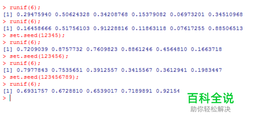 第三步,使用set.seed(12345)设置种子元素,然后调用runif(6),查看数据情况,如下图所示: