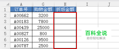 6.然后我们选中H2单元格,然后在编辑栏公式中添加:G2的金额*折扣比例=折后金额,实际付出2816元即可。如下图