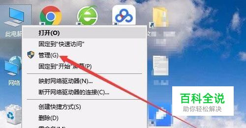 在Windows10桌面,右键点击“此电脑”图标,在弹出菜单中选择“管理”菜单项。