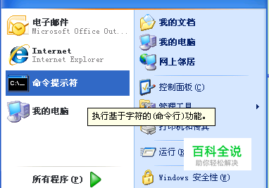 首先还得打开DOS操作窗口。点击“开始”菜单,选择“命令提示符”:
