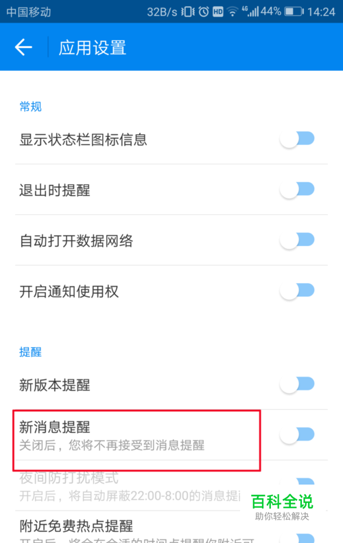 然后找到“新消息提醒”,把这个关闭就可以了。