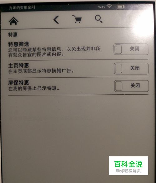 系统默认的设置是这样的,我们只需要关闭后两个选项,就能关闭Kindle上自带的广告了。