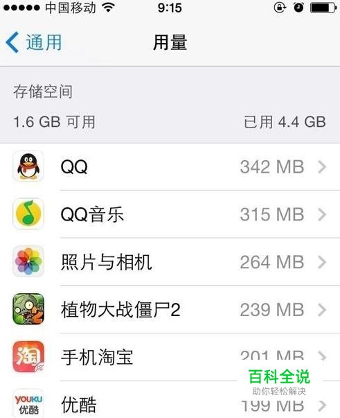 查看内存,依次打开:设置→通用→用量 。 会有张应用项目的占用空间列表,点击列表右侧按钮,就可以查看详情并且进一步删除无用项目。